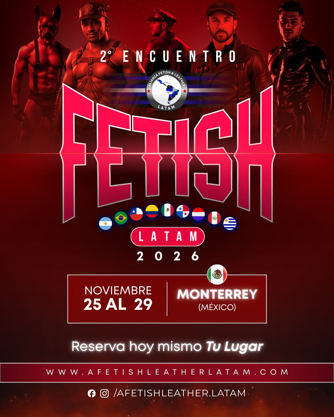 🖤 2º Encuentro Fetish LATAM por la AFLL 📍Monterrey, México 🇲🇽 📅 25 al 29 de noviembre de 2026 Una experiencia para quienes viven la escena con orgullo, respeto y comunidad. Ven a encontrarte con la familia kinky de Latinoamérica y sé parte de algo que cada año crece con más fuerza. ⚠️ SOLO PARA MAYORES DE EDAD. 🎟️ Reserva desde ahora. 🌐 http://www.afetishleatherlatam.com 📍Monterrey, México • Nov 25-29 • 2026 🔥QUÉ NO TE LO CUENTEN ¡VÍVELO!