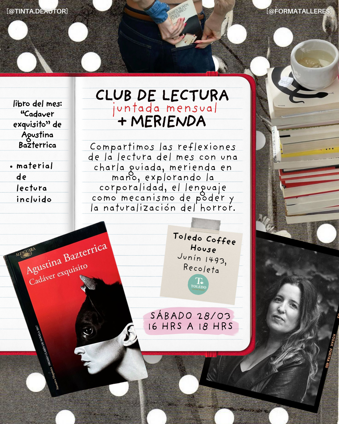Leemos previamente Cadáver exquisito de Agustina Bazterrica y lo conversamos en grupo en un espacio distendido y cuidado. Incluye merienda y material de lectura complementario. đź“… Sábado 28/03 – de 16 a 18 hs